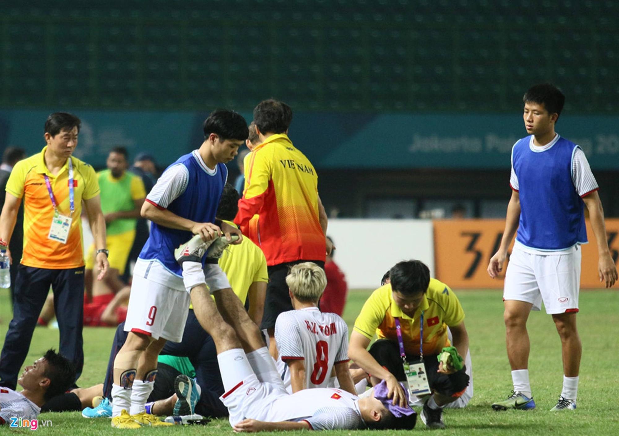 Chiến thắng của Olympic Việt Nam đã phải trả giá bằng cả máu và nước mắt. Ảnh: Quang Thịnh
