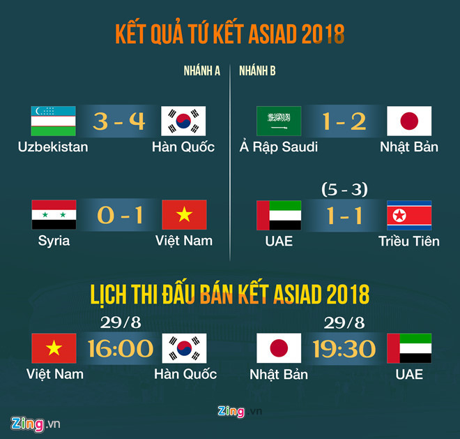 Lịch thi đấu 2 trận bán kết nội dung bóng đá nam tại ASIAD 2018. Đồ họa: Minh Phúc.