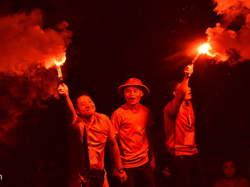 Pháo sáng dưới mưa cổ vũ Olympic Việt Nam tại SVĐ Hàng Đẫy Hà Nội chiều tối 27/8 có mưa khá nặng hạt nhưng hàng trăm người hâm mộ vẫn có mặt từ sớm tại SVĐ Hàng Đẫy để cổ vũ cho tuyển Olympic Việt Nam.