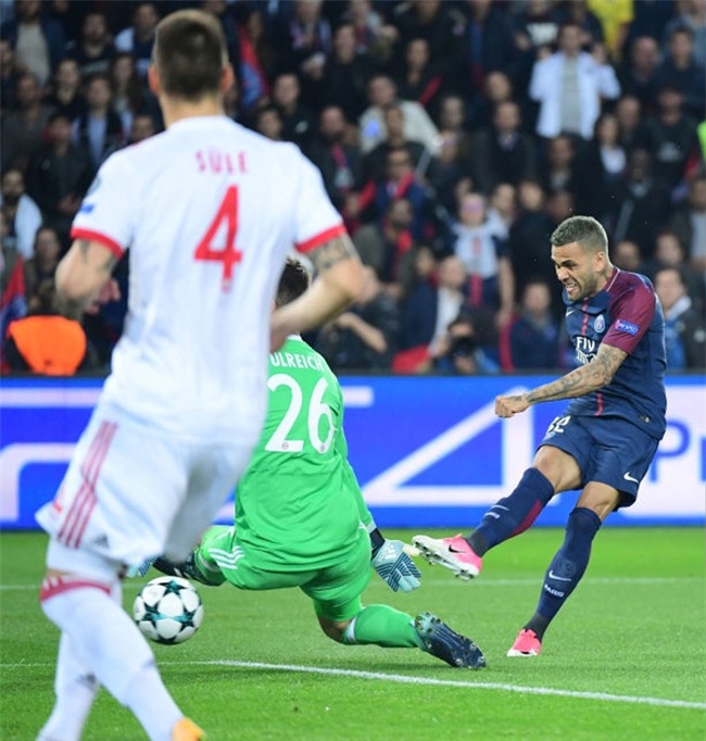 phải cho Dani Alves băng lên dứt điểm tung lưới Bayern.