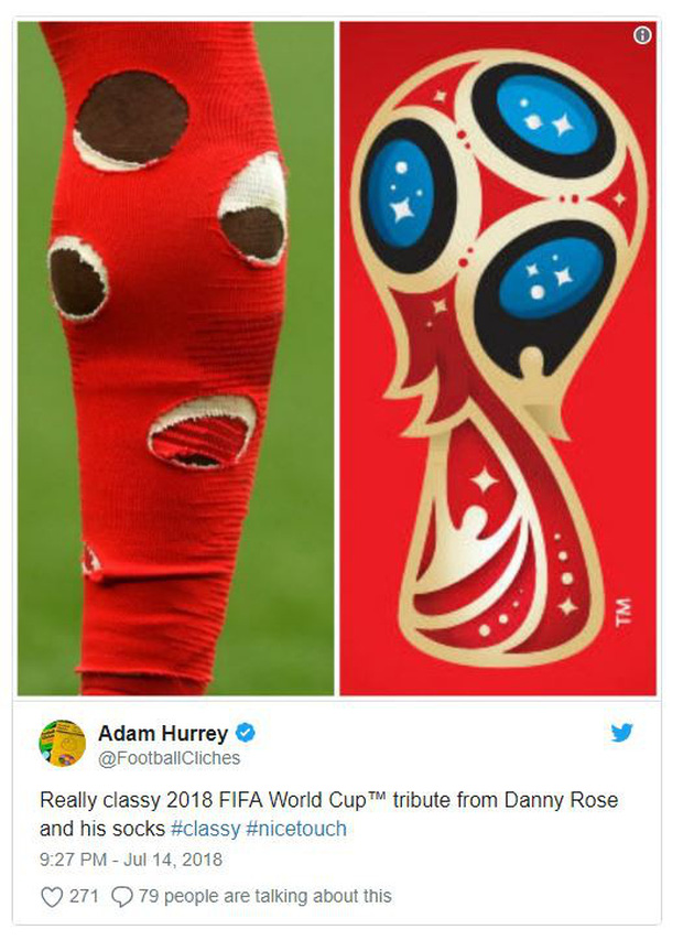 Người hâm mộ dễ dàng nhận thấy Danny Rose mang tất rách và tỏ ra khó hiểu. Trên mạng xã hội các fan thay nhau đăng ảnh của hậu vệ tuyển Anh kèm theo lời thắc mắc.