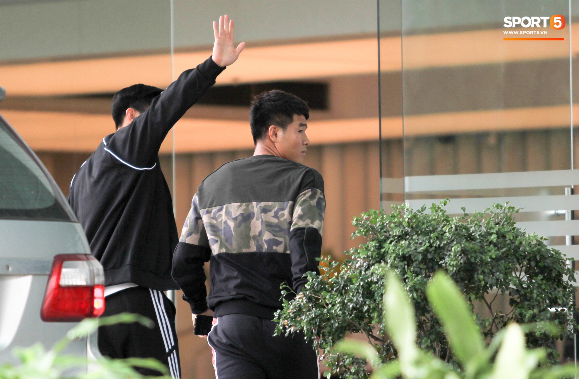 Tại khách sạn La Thành, nhiều người đã nhận ra sự hiện diện của 4 tuyển thủ và hô tên của họ. Văn Hậu vẫy tay chào người hâm mộ. Ảnh: Nhân Văn.