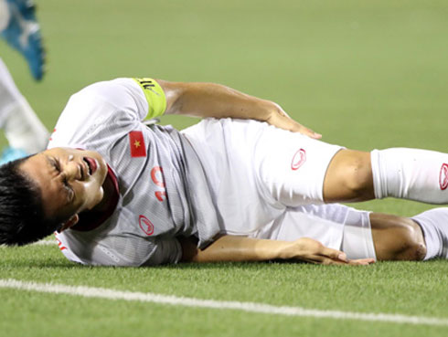 Đức Chinh đã lao vào vòng cấm khi trọng tài vẫn ra dấu yêu cầu toàn bộ cầu thủ đứng ngoài.