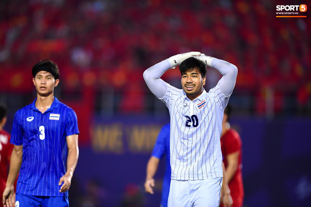Phản ứng tội nghiệp của thủ môn Thái Lan khi trọng tài quyết định Việt Nam được đá lại phạt đền. Ảnh: Hiếu Lương.