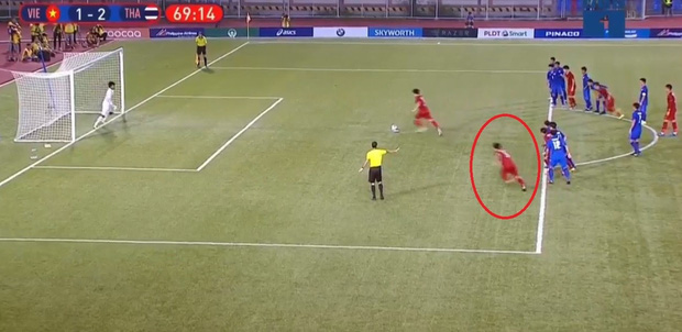 Trọng tài biên nhận định thủ môn Thái Lan đã bước quả 2 chân qua vạch trước khi Tấn Sinh chạm vào bóng.