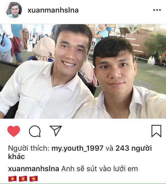 "Anh sẽ sút vào lưới em", Xuân Mạnh viết trên trang cá nhân.