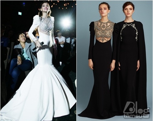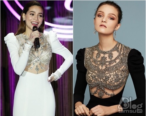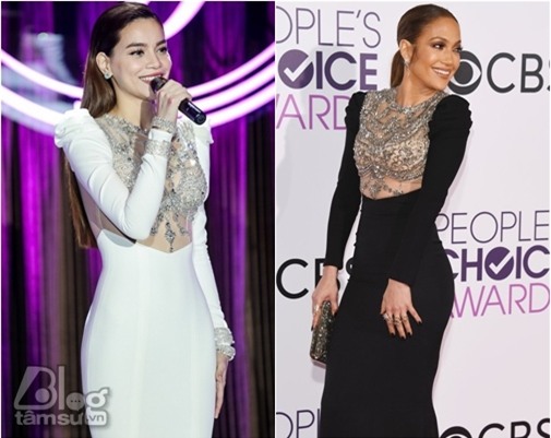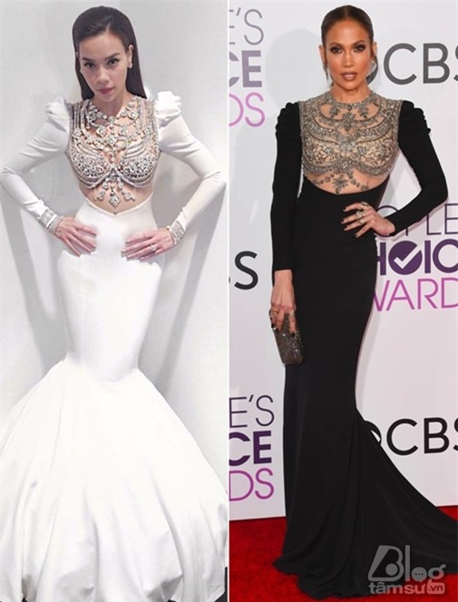 Trên mạng xã hội, NTK Lý Quí Khánh đang bày tỏ sự hãnh diện nhất định khi phát hiện ra rằng mình có chung “tư tưởng lớn” với thương hiệu thời trang đình đám Reem Acra. Cụ thể, một mẫu váy mà anh đã từng thiết kế cho Hồ Ngọc Hà cách đây khá lâu, lại mới có “bản sao” màu đen và trình làng cách đây khoảng nửa tháng. Siêu sao Hollywood Jennifer Lopez là mỹ nhân diện bộ đầm lộng lẫy này. Có thể nói, hai chiếc váy sở những chi tiết tương đồng lên tới 90%.