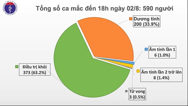 - Tính đến 6h ngày 02/8: Việt nam, có tổng cộng 590 ca mắc COVID-19, trong đó 306 ca nhiễm nhập cảnh được cách ly ngay.