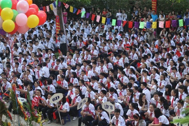 Học sinh Trường THCS Thực nghiệm Hà Nội trong ngày khai giảng. Ảnh: Hoàng Hường |