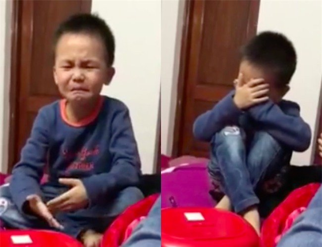 Cậu bé khóc hết nước mắt vì không muốn chị đi lấy chồng. Ảnh cắt từ clip |