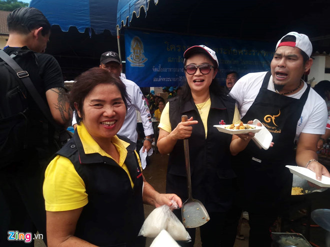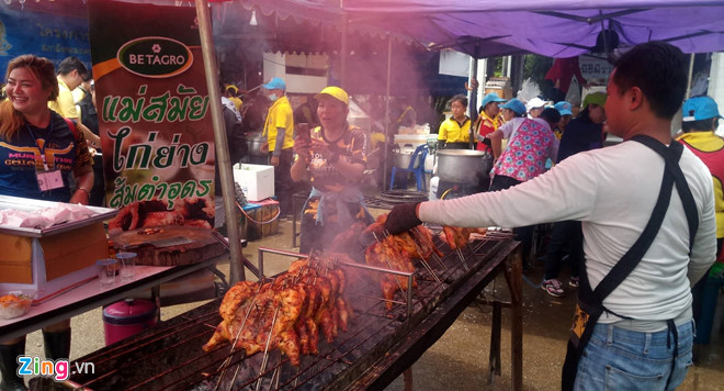 Không khí tại trung tâm báo chí dường như cũng vui hơn mọi ngày sau cuộc họp báo của ông Narongsak. Các tình nguyện viên vừa làm việc vừa nói cười rộn ràng. Có hẳn một quầy gà nướng mà bình thường không có.