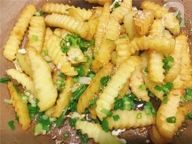 Cắn một miếng khoai, cảm nhận lớp gia vị mằn mặn đậm đà, xen lẫn hành