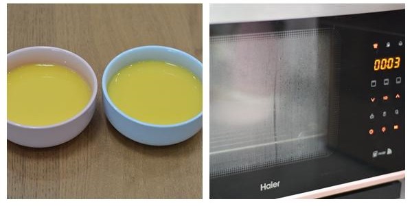 Đập trứng ra bát, đánh tan sau đó đổ qua rây lọc để trứng được mịn. Tiếp đến, bạn cho 260g nước ấm vào khuấy đều cùng trứng. Bạn có thể chuẩn bị hấp cách thủy hoặc nướng cách thủy như sau: Rót nước nóng vào khay rồi cho vào lò nướng rồi bật lò ở 110 độ C trong vòng 10 phút cho lò nóng đều, sau đó cho bát trứng vào khay, nướng cách thủy trong 15 phút.