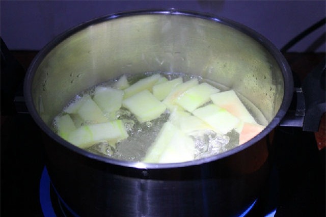 Đun sôi một nồi nước, thêm vỏ dưa hấu vào đun.