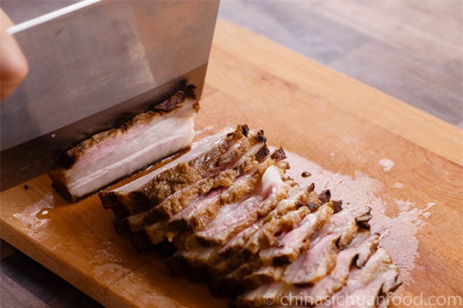 Dùng dao mảnh để thái khối thịt ra thành những lát thịt mỏng vừa, khoảng 0.5cm-0.8cm.