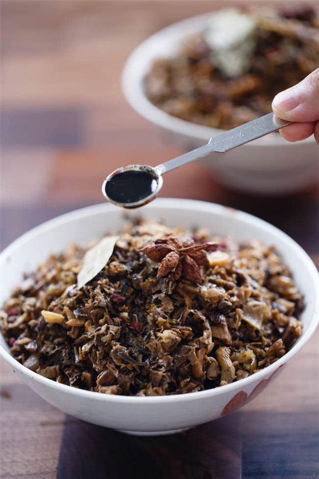 - 200g khô mei cai (hay còn gọi là meigan cai: các loại thảo mộc sấy khô dùng để nếm các món hầm, thường được bán trong những cửa hàng của người Hoa)
