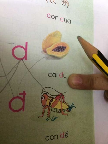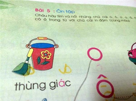 Cụ thể, trong cuốn sách Chuẩn bị cho bé vào lớp một – làm quen với chữ cái”, tại phần ôn tập tìm và nối chữ cái với các từ cho sẵn, hàng loạt các từ bị viết sai chính tả một cách trầm trọng. Đáng lẽ phải là “thùng rác” thì sách tham khảo lại viết thành “thùng giác”, “con ngựa” được các nhà biên tập sách dành cho thiếu nhi viết thành “quả ngựa”. Đặc biệt, lỗi sai cẩu thả được thể hiện rõ nét khi bên dưới bức tranh vẽ quả đu đủ được gọi thành “cái đu”…