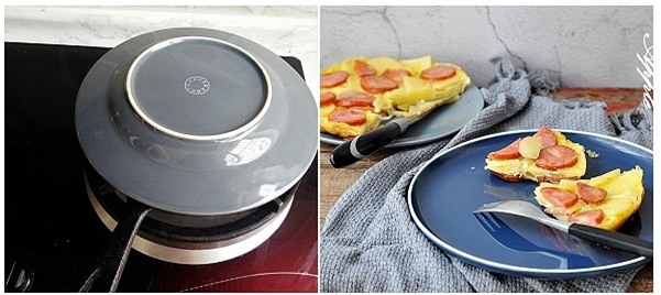 Sau đó bạn đậy chảo lại, cho đến khi trứng chín thì mở ra, cẩn thận cho trứng ra đĩa và cắt thành từng miếng.