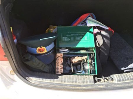 Hành trang nhóm cướp bỏ lại trên taxi.