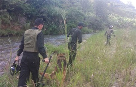 Cảnh sát truy lùng nhóm cướp trong rừng. Ảnh: CTV |