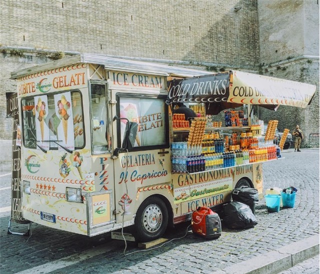 Những chiếc xe bán đồ ăn nhanh điểm xuyết thêm cho vẻ đẹp thơ mộng nơi đây.