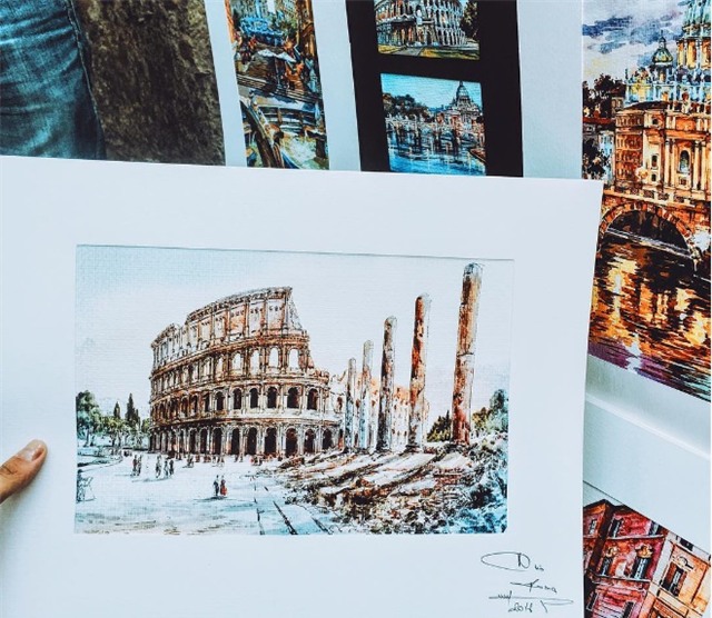 Cô cũng mua 1 bức ảnh nghệ thuật chụp về đấu trường để lưu giữ làm kỷ niệm.