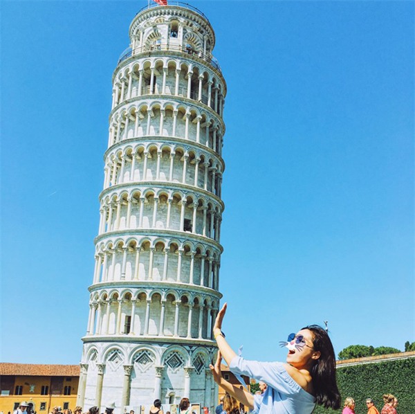 Tới Ý, Kỳ Duyên không thể bỏ qua điểm đến mang tính biểu tượng: tháp nghiêng Pisa.