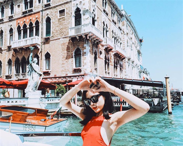 Đương nhiên Kỳ Duyên cũng không thể bỏ qua Venice, nơi được mệnh danh là thành phố tình yêu với những kênh rạch chằng chịt và cũng là một trung tâm thời trang và mua sắm lớn của Italy.