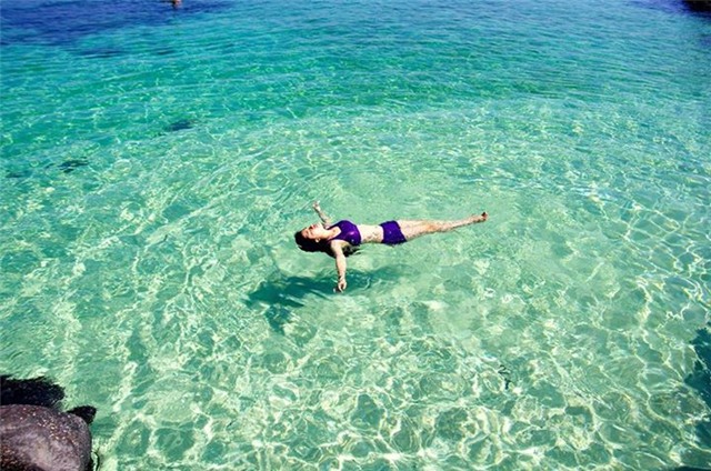 Ngâm mình trong làn nước trong vắt, mát lịm là điều ai cũng ao ước khi được đặt chân tới đảo Bé.