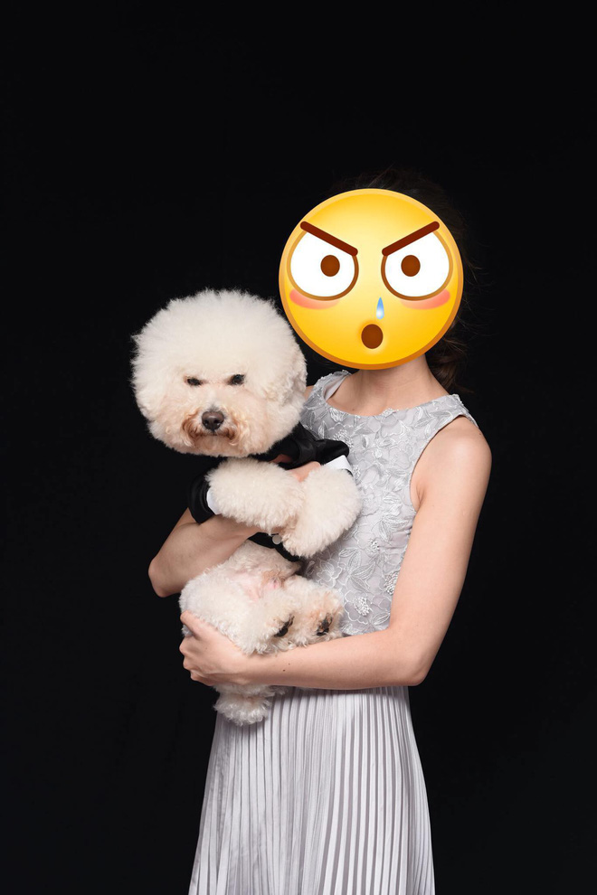 Theo dõi bộ ảnh vừa được cô dâu trẻ chia sẻ, có thể thấy mặc cho 2 con sen cố gắng "nhăn nhở" bao nhiêu, làm trò đủ kiểu, con poodle "đáng ghét" vẫn lì lợm giữ nguyên bộ mặt như đưa đám. Ám quẻ đến thế là cùng!