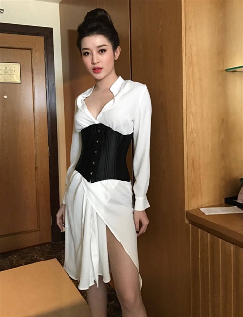 Huyền My liên tục dùng corset để căn chỉnh vòng eo của mình