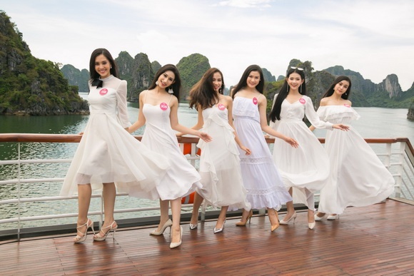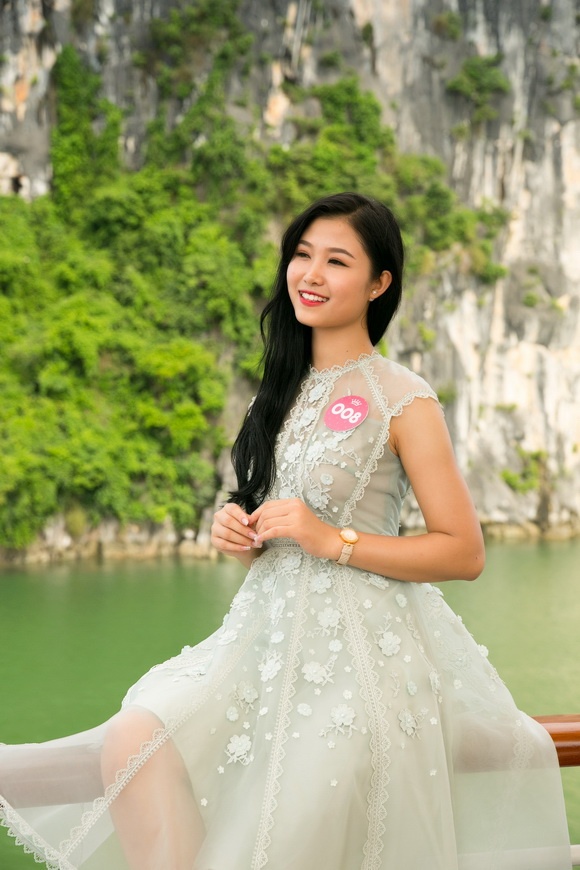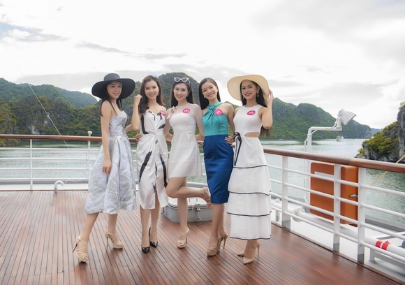 Các cô gái đã vô cùng thích thú trước vẻ đẹp của biển trời Hạ Long. Xứng danh là kỳ quan thiên nhiên thế giới, vịnh Hạ Long yêu kiều với một màu xanh hợp nhất của nước, của non, của muôn ngàn vạn đảo.