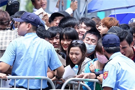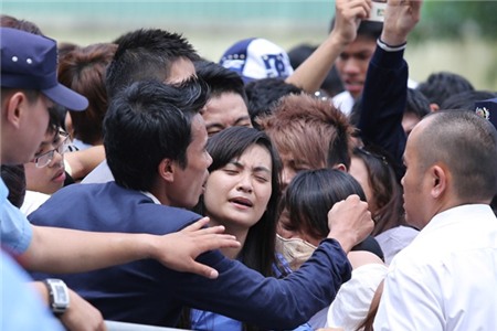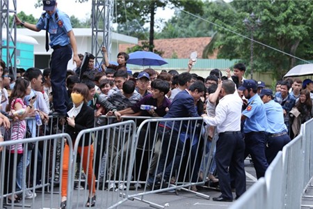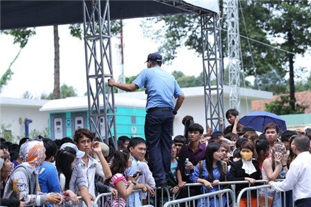 Sau một hồi giằng co, các thí sinh đã đạp đổ hàng rào để ùa về khoảng không phía trước trong sự bất lực của một vài bảo vệ. (XEM CLIP)