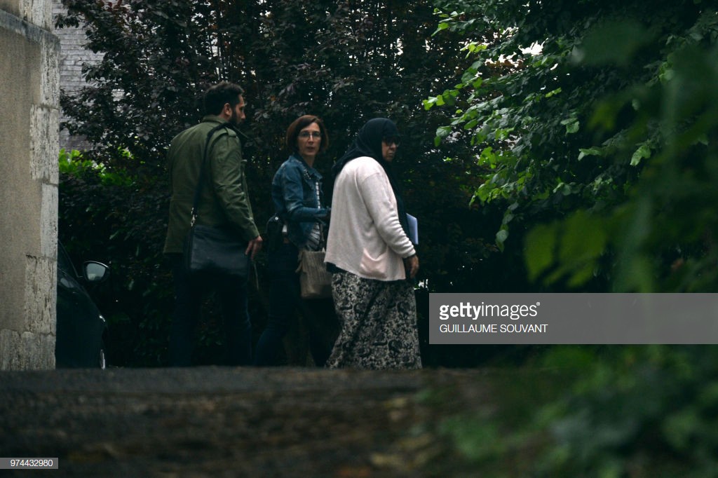 Bà Halima Touloub (bên phải) khi cô rời tòa án ở Blois, miền trung nước Pháp sau khi bị cáo buộc sát hại con gái cách đây 31 năm.