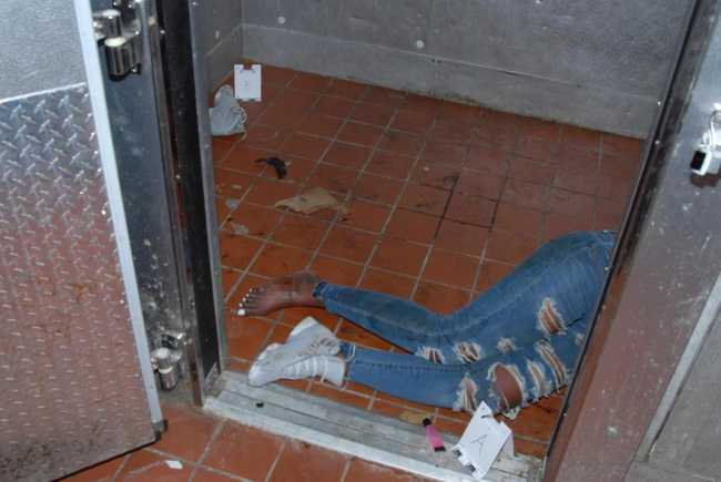 Một đoạn clip đã ghi lại cảnh cô gái trẻ bước vào bếp, hướng đến chiếc tủ đông. Nhờ đó mà cuối ngày hôm đó, thi thể của Jenkins được tìm thấy trong tủ đông khu bếp của khách sạn trong tư thế nằm sấp, trên cơ thể chỉ có một vết cắt nhỏ ở bàn chân.