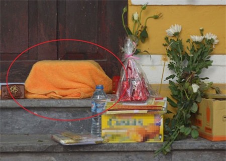 Hài nhi xấu số được đặt trước cổng chùa. |