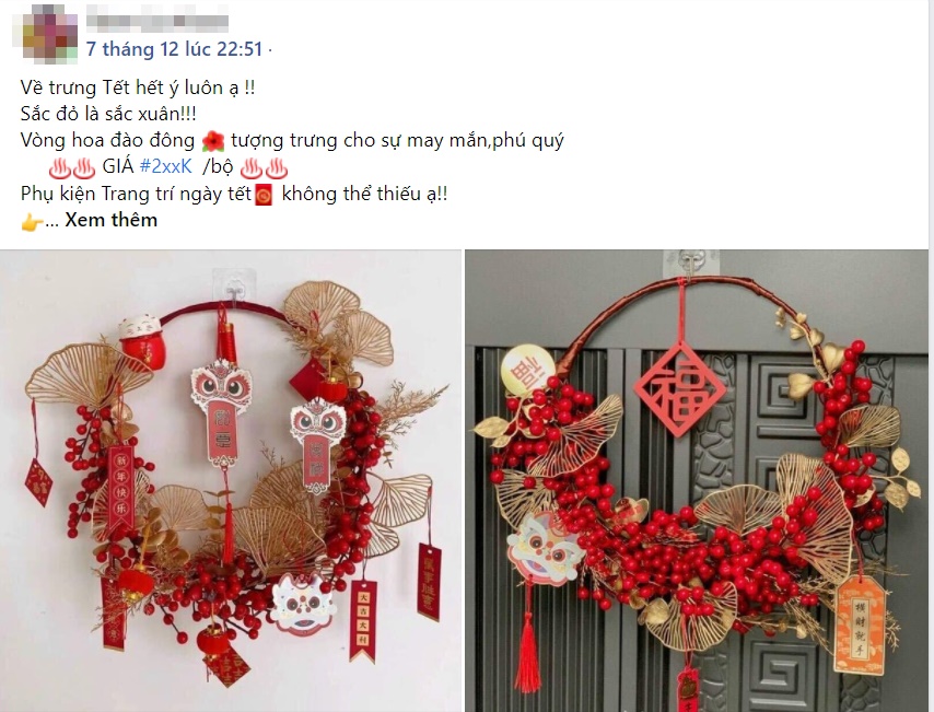 Dây trang trí treo Tết giá 45k/set. Ảnh chụp màn hình.