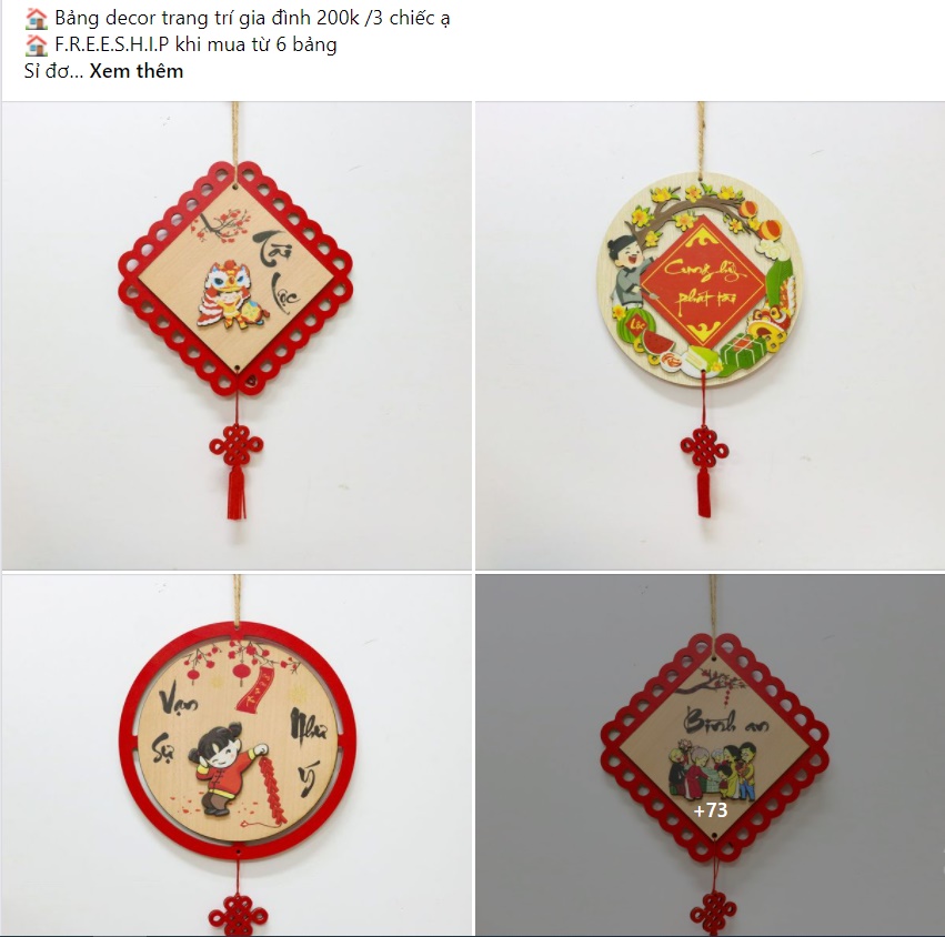 Bảng decor trang trí trong gia đình giá 200k/3 chiếc. Ảnh chụp màn hình.