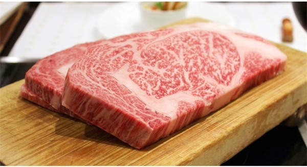 Thịt bò Kobe với những miếng thịt trải đều mỡ, một đặc điểm nổi bật của loại đặc sản này.
