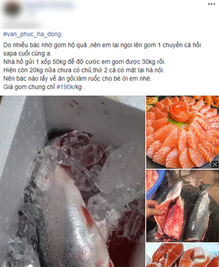 Mới đây trên một group mua bán sôi động có rất đông các chị em tham gia, chị Trần Lan Anh, 35 tuổi ở Hà Đông, Hà Nội đã gom đơn cho chuyến cá hồi tươi cuối cùng trong tuần của chị về Hà Nội.