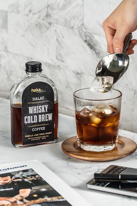 Nếu như cà phê "mix" rượu rum đã quá quen thuộc với nhiều người thì Whiskey Cold Brew lại mang một sắc thái hoàn toàn mới. Toát lên hương men và khói đặc trưng nhưng món đồ uống này hoàn toàn không chứa thành phần rượu. Nó được chế biến bằng cách ngâm ủ cùng men đại mạch trong thùng gỗ giống như quá trình ủ rượu, thành phần chỉ gồm 100% cà phê nguyên chất được chiết xuất lạnh.