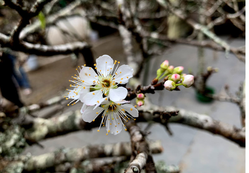 Hoa mận rừng có 5 cánh, màu trắng, nhỏ hơn hoa đào nhưng khiến giới sành chơi Hà thành mê mẩn