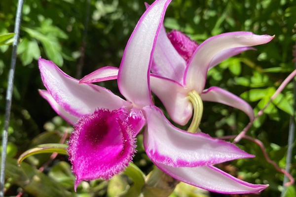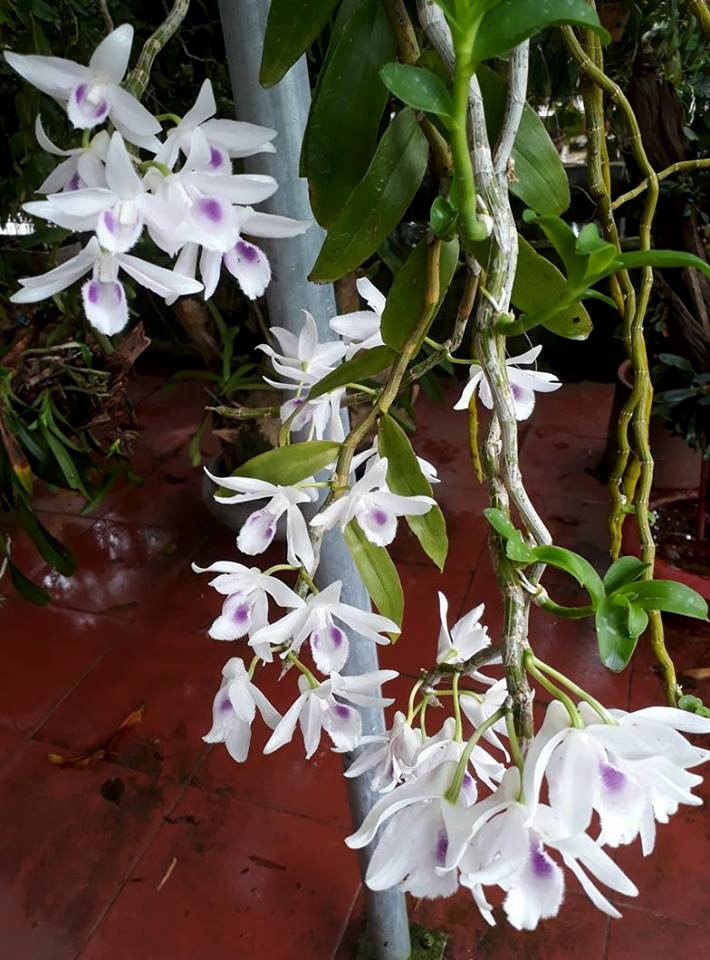Cây hoa lan này có hoa màu trắng tinh khiết, nhụy tím khác biệt dòng truyền thống.