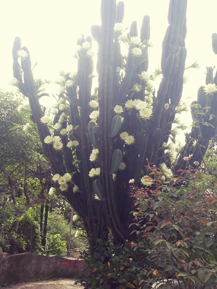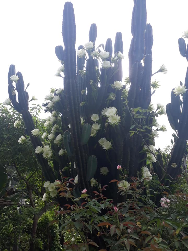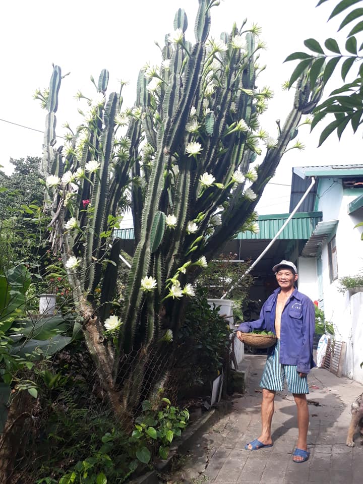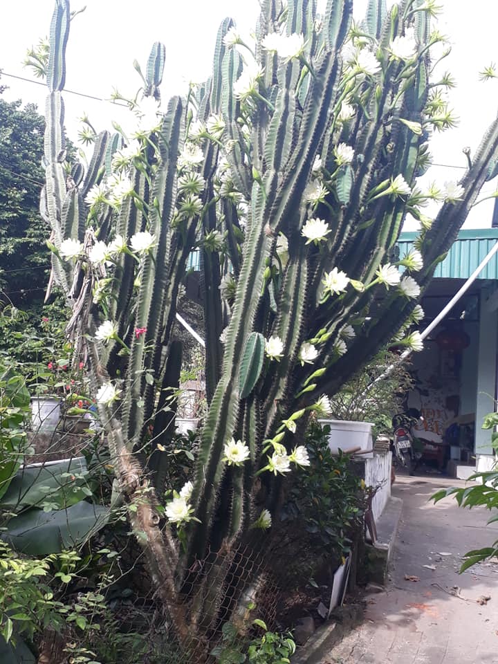 Cây xương rồng 30 năm tuổi khổng lồ, ra hoa trắng muốt ở Quảng Ninh