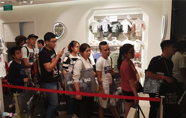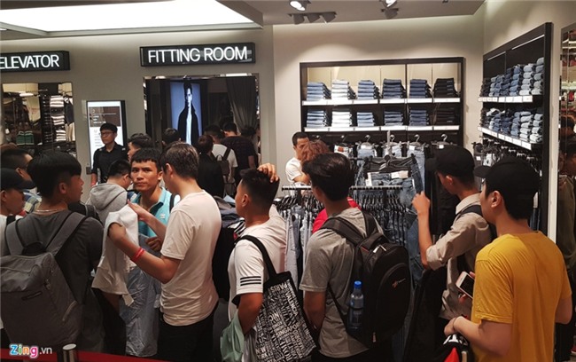 Anh Ngọc Thể (quận 3) cho biết phải xếp hàng từ rạng sáng, nhưng sau gần 6 giờ xếp hàng, vào bên trong tiếp tục chen lấn khá mệt. "Thương hiệu nổi tiếng nhưng giá khá bình dân nên tôi quyết định chọn mua luôn vài bộ đi làm và đi chơi trong ngày khai trương", khách hàng này cho hay. |
