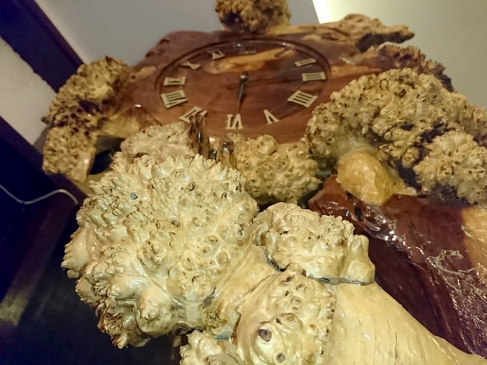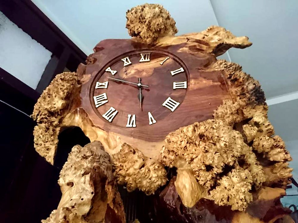 Chiếc đồng hồ làm từ gốc me cổ thụ, được chế tác cẩn thận