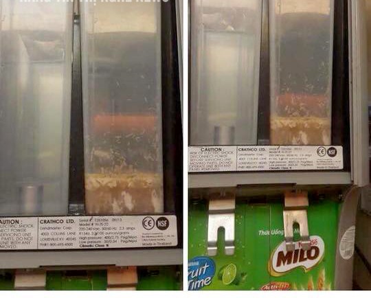 Máy bán sữa đã ngưng phục vụ, cất trong kho 10 ngày qua nhưng nhân viên quên vệ sinh máy