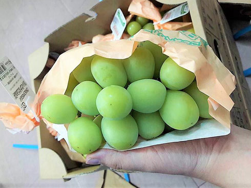Chị Thảo Vy - giám đốc điều hành hệ thống cửa hàng trái cây nhập khẩu cho biết, nho Ruby Roman được xách tay từ Nhật về Việt Nam bán với giá 500 USD (tương đương 11 triệu đồng).