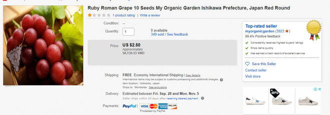 Được biết, ngoài bán theo chùm, nho Ruby Roman được bán theo hộp 2-3 quả, giá hơn 1.000 yên (khoảng 220.000 đồng) tại Nhật. Khi về Việt Nam, một hộp nho này có giá khoảng 500.000 đồng/3 quả.
