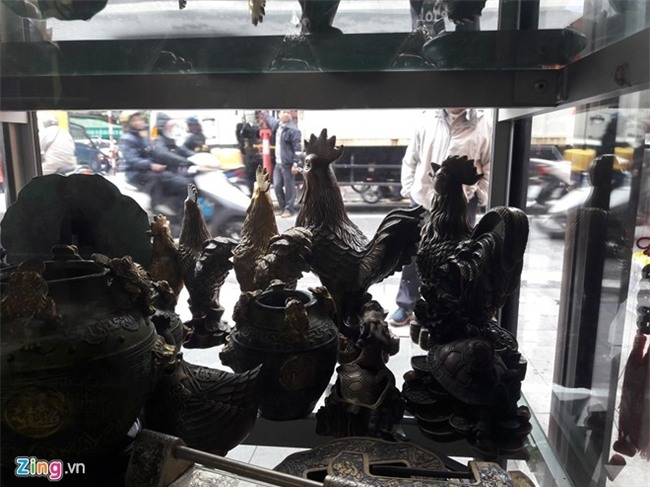 Theo chủ một cửa hàng kinh doanh đồ cổ tại đầu phố Hàng Mã, gia đình bắt đầu nhập gà linh vật bằng kim loại giả đồng về đổ buôn từ đầu tháng Chạp. Các loại linh vật giả đồng bình thường gia chủ nhập từ Trung Quốc với giá chỉ khoảng 400.000-500.000 đồng/con rồi đổ buôn với giá 700.000-800.000 đồng/con. Các đại lý bán lẻ có thể bán cao hơn với giá cả triệu đồng.